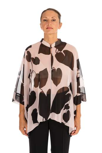 Camicia FANTASIACamicia/caftano in georgette stampata con manica sciallata, arricchito da dettaglio un gancetto gioiello. Adatto per i look più raffinati. Tessuto ricilato