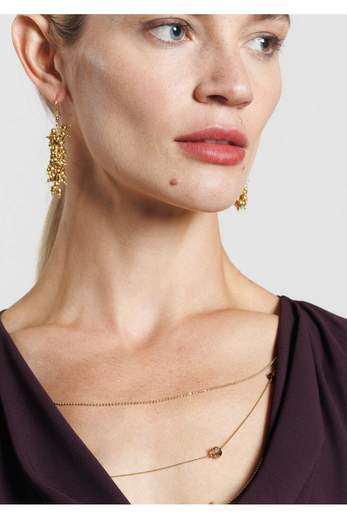 lusa smanicata in tessuto fluido con elegante scollo a cascata, impreziosita da una sottile collana dorata integrata che illumina il décolleté con un tocco sofisticato. La linea essenziale e scivolata esalta la femminilità con naturalezza. Leggi tutto