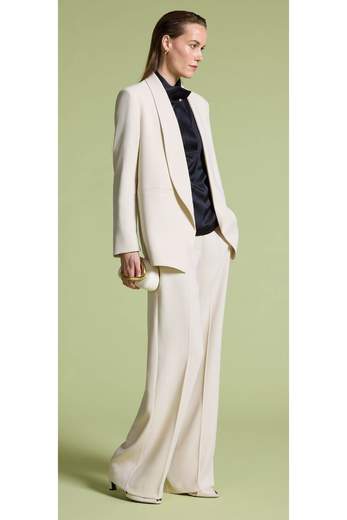 Polo bimaterica in raso di viscosa stretch e jersey mercerizzato di cotone, dalla raffinata linea kimono per un look moderno e conemporaneo. Il capo è più lungo dietro e più corto davanti, ha il collo alto aperto e le maniche tre quarti.
