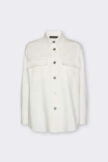 CAMICIACamicia over in gabardina stretch, con tasche a soffietto e pattine. Perfetta per un layered outfit casual e disinvolto, abbinata al suo pantalone oppure come giacca sopra un abito. Polsi chiusi con doppio bottone, bottoni madreperla e collo maschile.