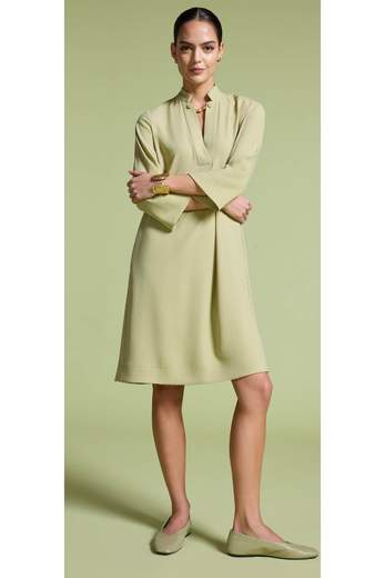 L'abito chemisier verde avocado con collo a listino è un mix perfetto di eleganza e comfort. La manica tre quarti e le tasche inerite nei fianchi lo rendono contemporaneo ed è perfetto per un outfit quotidiano.