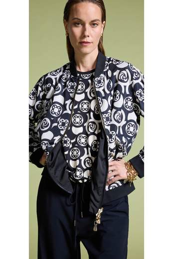 Blusa bimaterica in jersey e serico 100% silk stampata con manica lunga e scollatura girocollo definito da bordo a costina smacchinato, vestibilità asciutta. Preziosa, colorata e femminile per le interessanti stampe multicolor sulla seta che lo fanno diventare un'immancabile sotto giacca e/o in abbinamento ai cardigan.