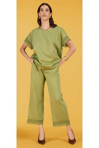 PANTALONE IN RASATELLO CON BORDO IN MACRAME'Realizzato in raso di cotone stretch, ha una vestibilità regolare che valorizza la figura. La linea pulita e l'inserto di macramè in tono sul fondo, lo rendono ideale per look quotidiani.. La vestibilità regular fit, con le tasche all'americana, definisce una silhouette elegante e moderna, mentre lelastico dietro ne assicura il comfort.