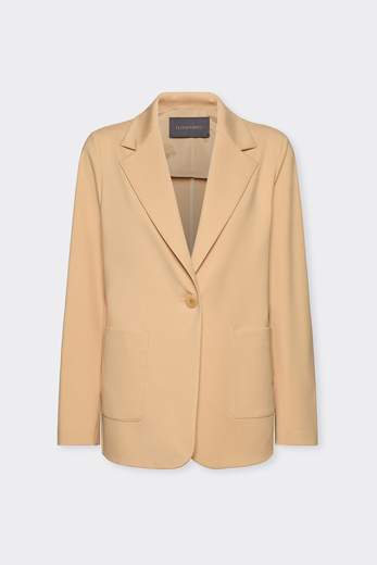 Blazer morbido in punto milano stretch. Modello con impostazione classica ma confortevole grazie al materiale.Collo a rever, maniche lunghe e tasche applicate. Chiusura con asola e bottone.