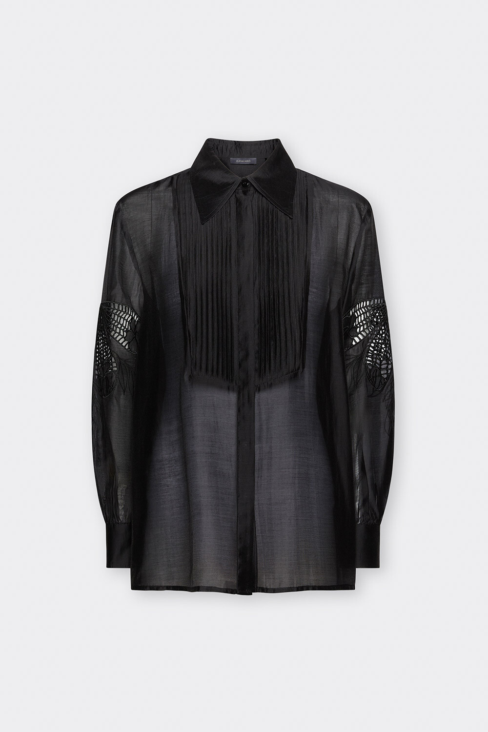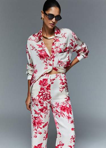 CAMICIA FANTASIA CON PIPINGLa stampa a fiori di questa camicia in raso sboccia sul tessuto come un giardino orientale, essenziale e sofisticato. Sceglila anche per una cerimonia estiva in coordinato con i pantaloni.