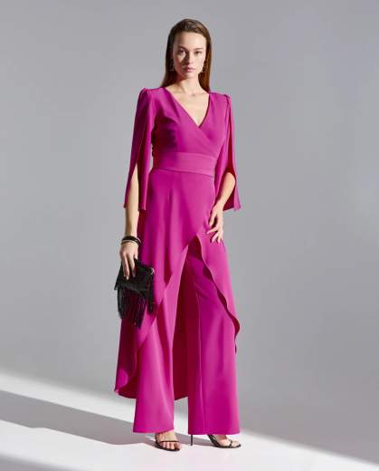 CASACCA+PANTALONE ELEGset composto da caftano e pantaloni in crêpe comfort. Il caftano presenta una scollatura incrociata, una vita definita e ampie maniche con spacchi; i pantaloni sono a gamba dritta.