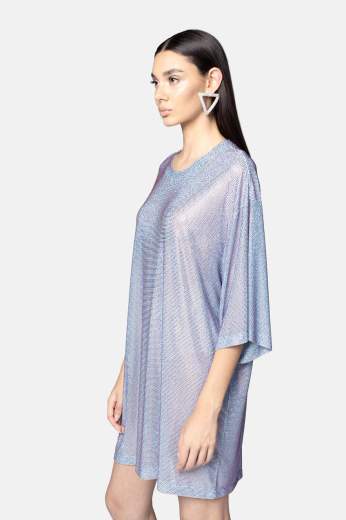 T-shirt over elegante con strass Bonaire nera/celeste polvere rivestita con mini fix, maniche corte.Lunghezza media