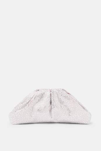 Pouch bag in satin con strass e tracolla removibilePouch bag Cambridge color nero realizzata in satin, impreziosita da applicazioni in strass che creano una superficie luminosa e definita. Il modello è pensato per essere indossato a mano o con tracolla, mantenendo una costruzione pulita e proporzioni equilibrate. La chiusura automatica assicura praticità e continuità formale, mentre la tracolla removibile consente una portabilità versatile.