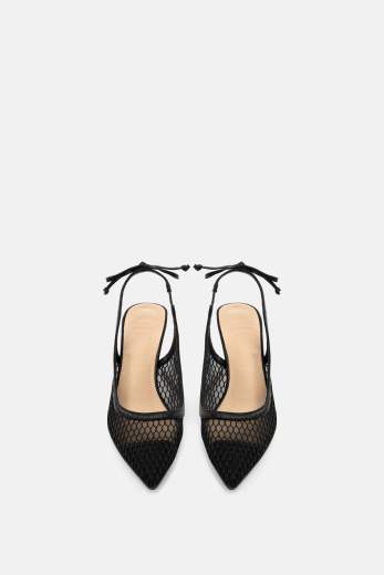 SCARPESlingback Dallas nera in tulle con motivo nido d'ape.