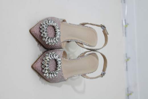 SANDALIa punta con cinturino al tallone regolabile. Tacco alto. 6 cm porta sulla punta un particolare rosone di Swarovski argento che sposano con il tessuto laminato che le copre l'intera scarpa.