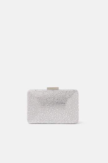 Clutch con microcristalli e chiusura metallica con logo TFHClutch Niger color nude caratterizzata da una superficie interamente tempestata di microcristalli applicati in modo uniforme, studiata per ottenere una resa luminosa compatta e continua. La chiusura metallica è rifinita con logo TFH inciso al laser, integrato come dettaglio grafico pulito e funzionale. La tracolla removibile consente una portabilità versatile, mantenendo una struttura definita e proporzioni equilibrate.