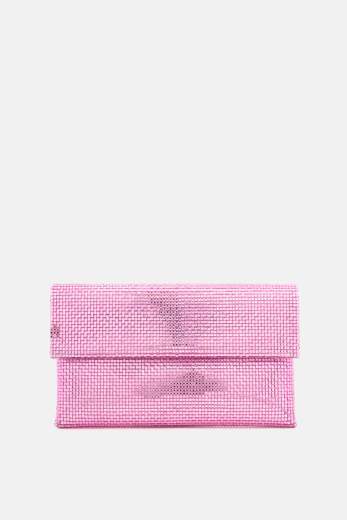 POCHETTEFoldover in materiale specchietto giallo, chiusura con patta e tracolla sottile in metallo.